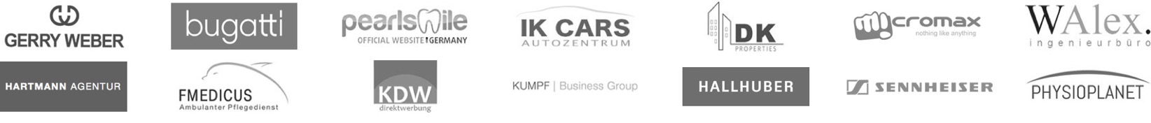 Seit dem Bestehen unserer Agentur zählen unterschiedlichste Firmen zu unseren Kunden: Ingenieurbüros, Medizinischen Zentren, Bauunternehmen, Fotografen, Restaurants, Versicherungs- und Immobilien- agenturen, Reisebüros, Künstler, Klein und Großunter-nehmen und viele andere.